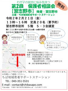2/21(金)習志野市役所にて保護者相談会を開催します!!