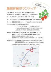 皆さんには、シーズン最後のイチゴ摘みボランティアをお願いいたします。