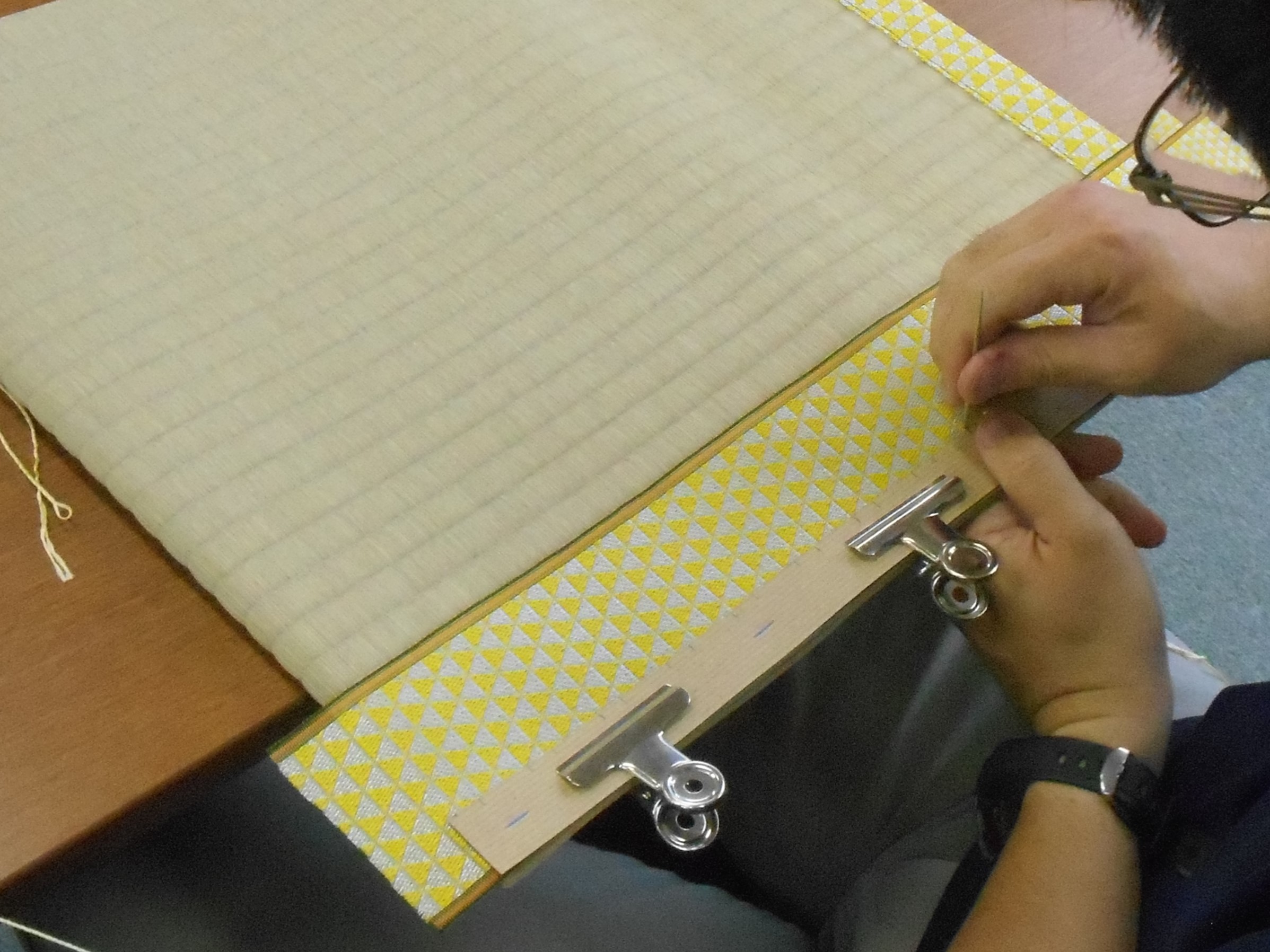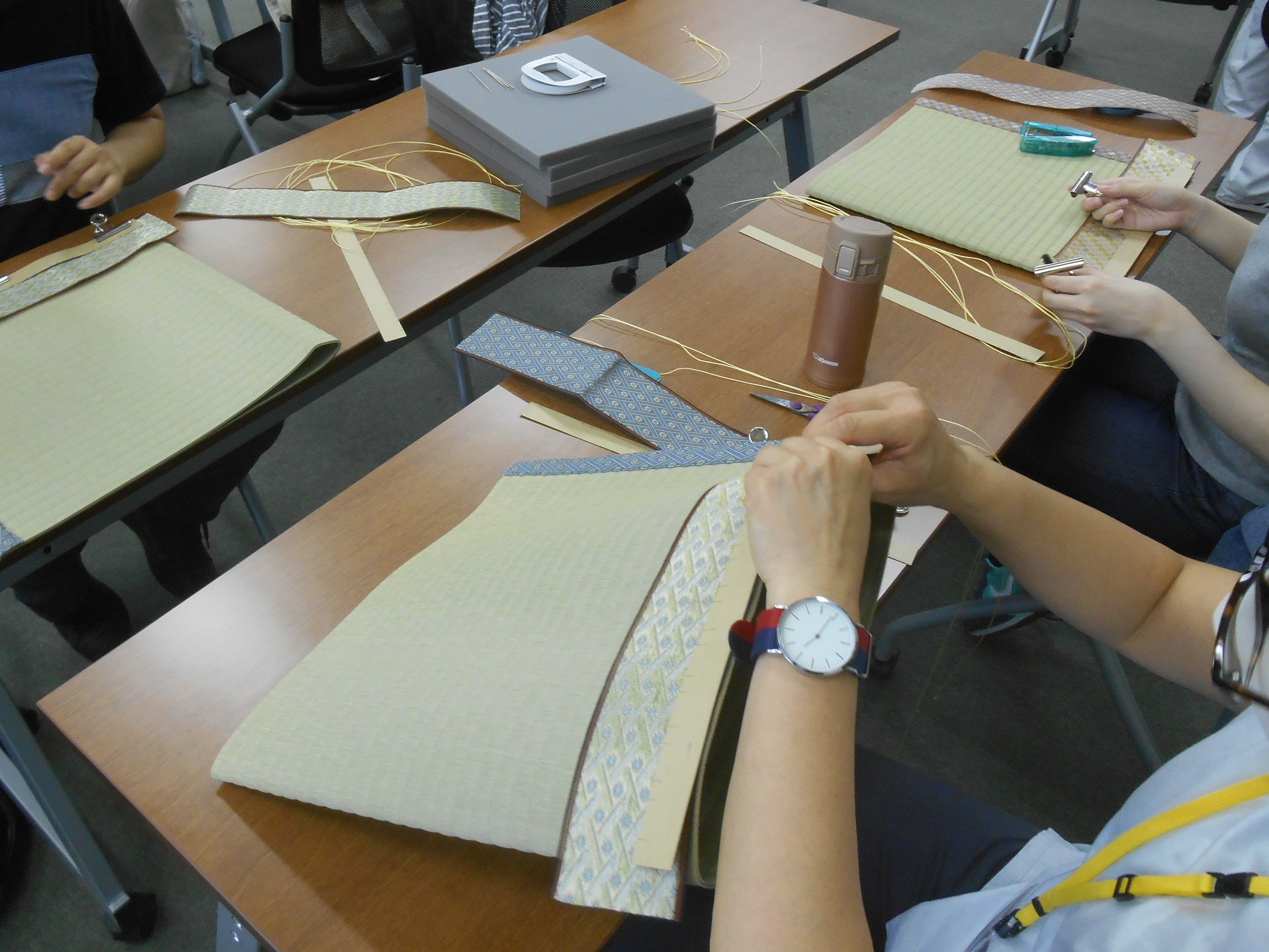千葉県職業能力開発協会主催・ものづくりの魅力発信講座の一環で、畳職人さんに教えていただきながら畳素材の座布団を作る体験をしました!