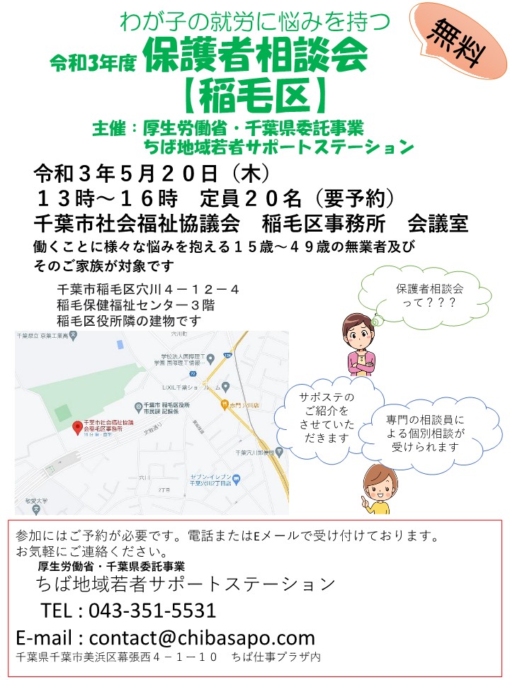 5/20(木)13時~保護者のための相談会開催!【稲毛区】