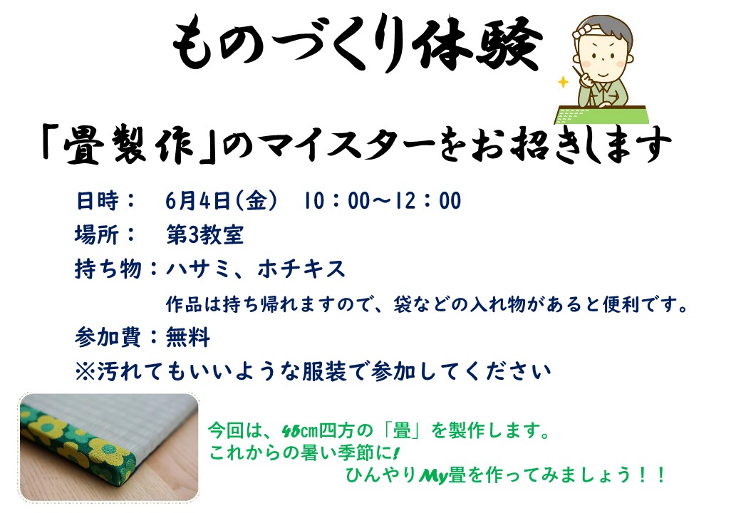 6/4(金)ものづくり体験~ミニ畳を作ろう!!
