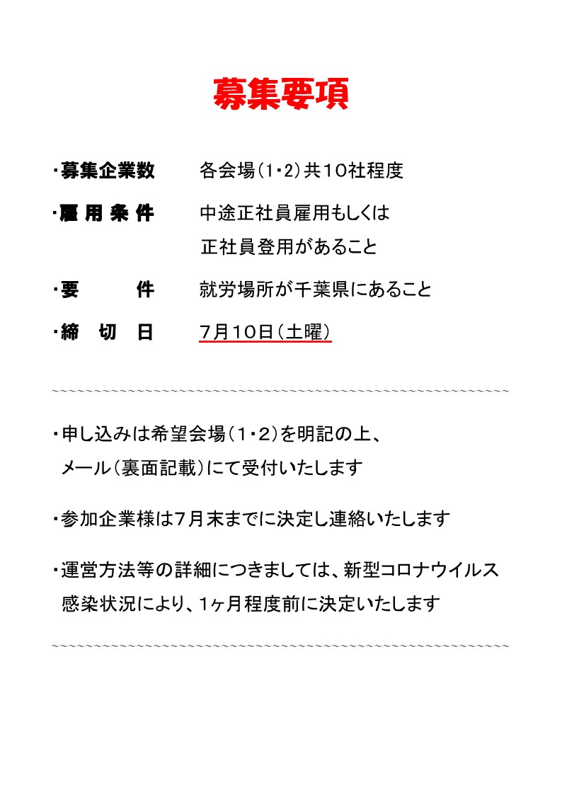 ちばサポートステーションでは合同企業説明会を開催します。